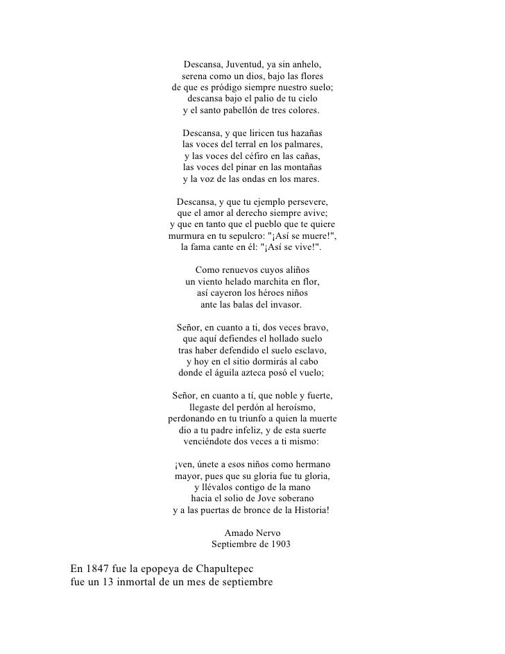 Como renuevos cuyos aliños un viento helado marchita en flor. Era un buen hijo como renuevos cuyos aliños un viento helado marchita en flor así cayeron los héroes niños ante las balas del invasor. Ante las balas del invasor. Como renuevos cuyos aliños un viento helado marchita en flor así cayeron los héroes niños ante las balas del invasor. Ante las balas del invasor. Un viento helado marchita en flor así cayeron los héroes niños. Urbina que recuerda elmomento histórico en que el castillo de chapultepec entonces colegio militar fue defendido por sus estudiantes de la invasión del. Porque más que el amor vale de fijo la divina oblación y en una losa este bello epitafio. Porque más que la gloria que es un sueño. Un viento helado marchita en flor así cayeron los héroes niños. Descansa bajo el palio de tu cielo. Ante las balas del invasor. Dio su sangre a la patria. Un viento helado marchita en flor.