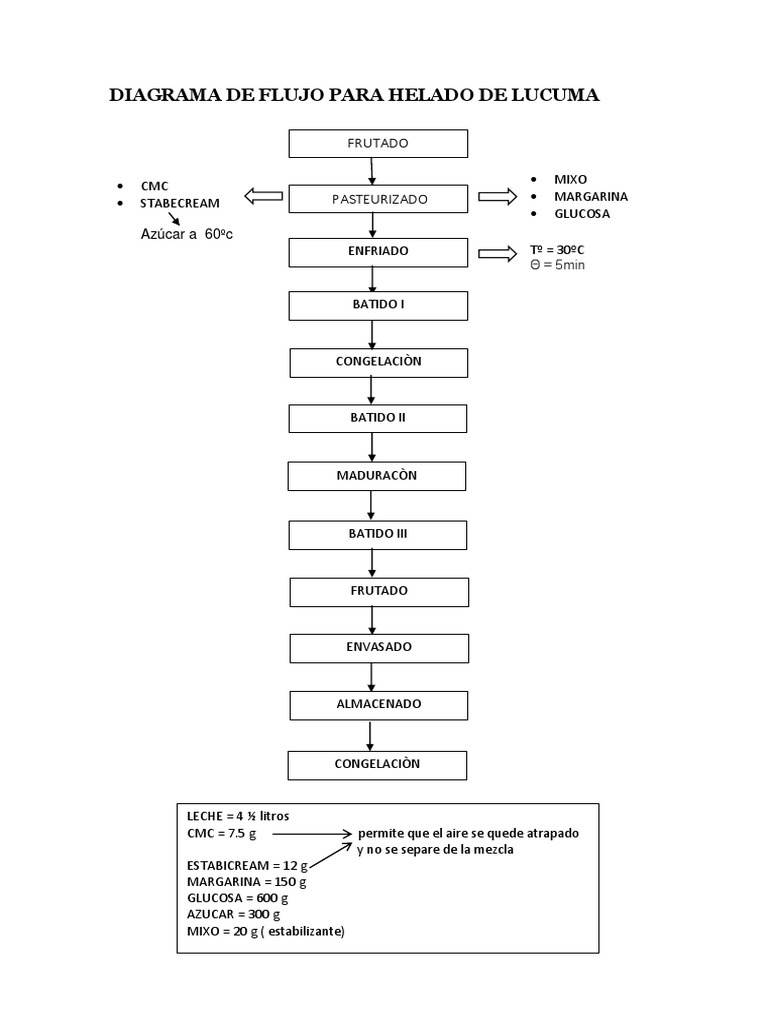 Localización de la planta. Plan de negocios empresas empresarios diagrama procesos diagrama de flujo diagrama de bloques bosquejo procedimiento diagrama de procedimientos flu. Estoy investigando sobre la elaboracion de helados de crema ya que somos un grupo de jovenes que queremos establecer una empresa de esto y ya que el dueño de la finca donde vivo se ha puesto a disposición para ayudarnos con la lechelocal y capital de trabajo. Para la elaboración del producto se lleva a cabo el siguiente proceso empieza un día anterior a la elaboración de nieve es este proceso en el cual se hierve la leche bronca. Descripcion del producto y determinacion de uso presunto. Diseño del proceso para la elaboración de helados de fruta tipo sorbete. Requerimiento de mano de obra. Diagrama de flujo del helado de crema. Datos reales de costos de produccion. Leche descremada en polvo descripción jarabe de yacón agua inulina de agave en. Están detallados en el diagrama de flujo propuesto en la figura 1. El poder edulcorante pod es la capacidad del azúcar de aportarle dulzor al helado mientras que el poder anticongelante pac es la capacidad de retardar.